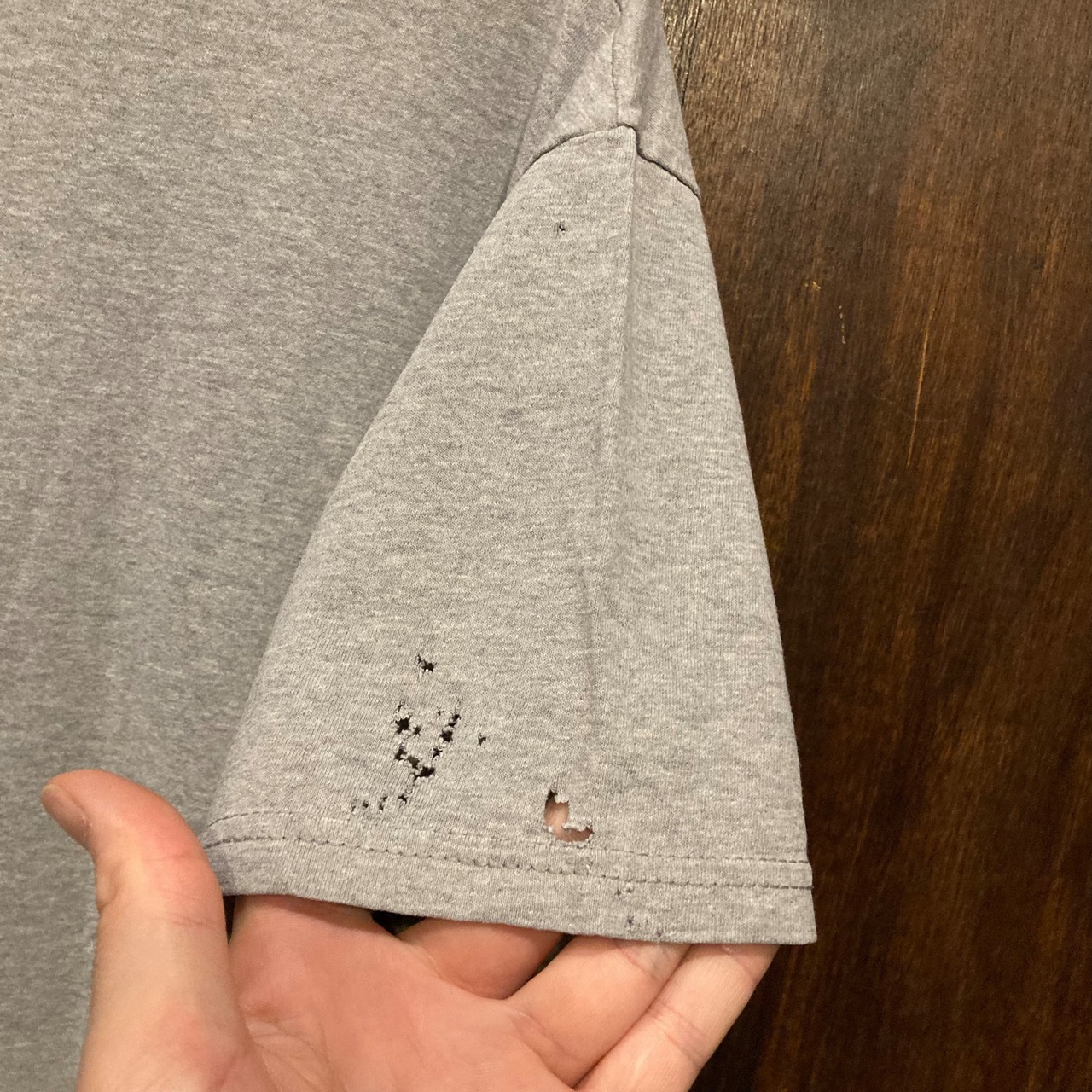 アメリカ古着 ポケットT ポケT ダメージ古着 半袖Tシャツ グレー 無地Tです。
