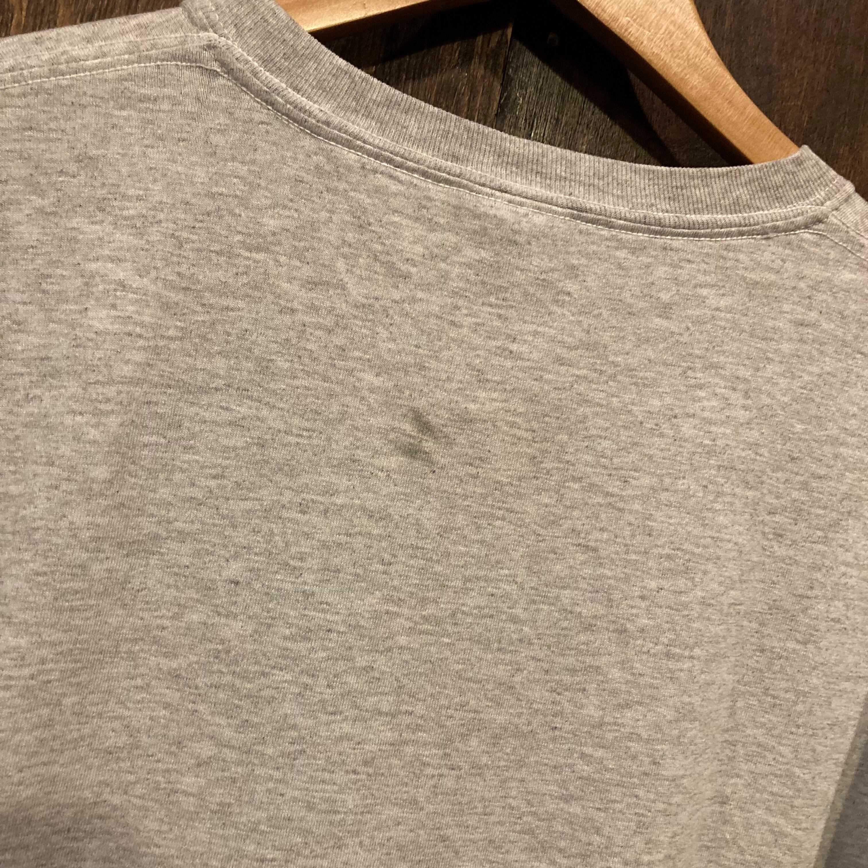 アッシュグレーボディに野球チームのロゴがプリントされたカレッジ系Tシャツ。
