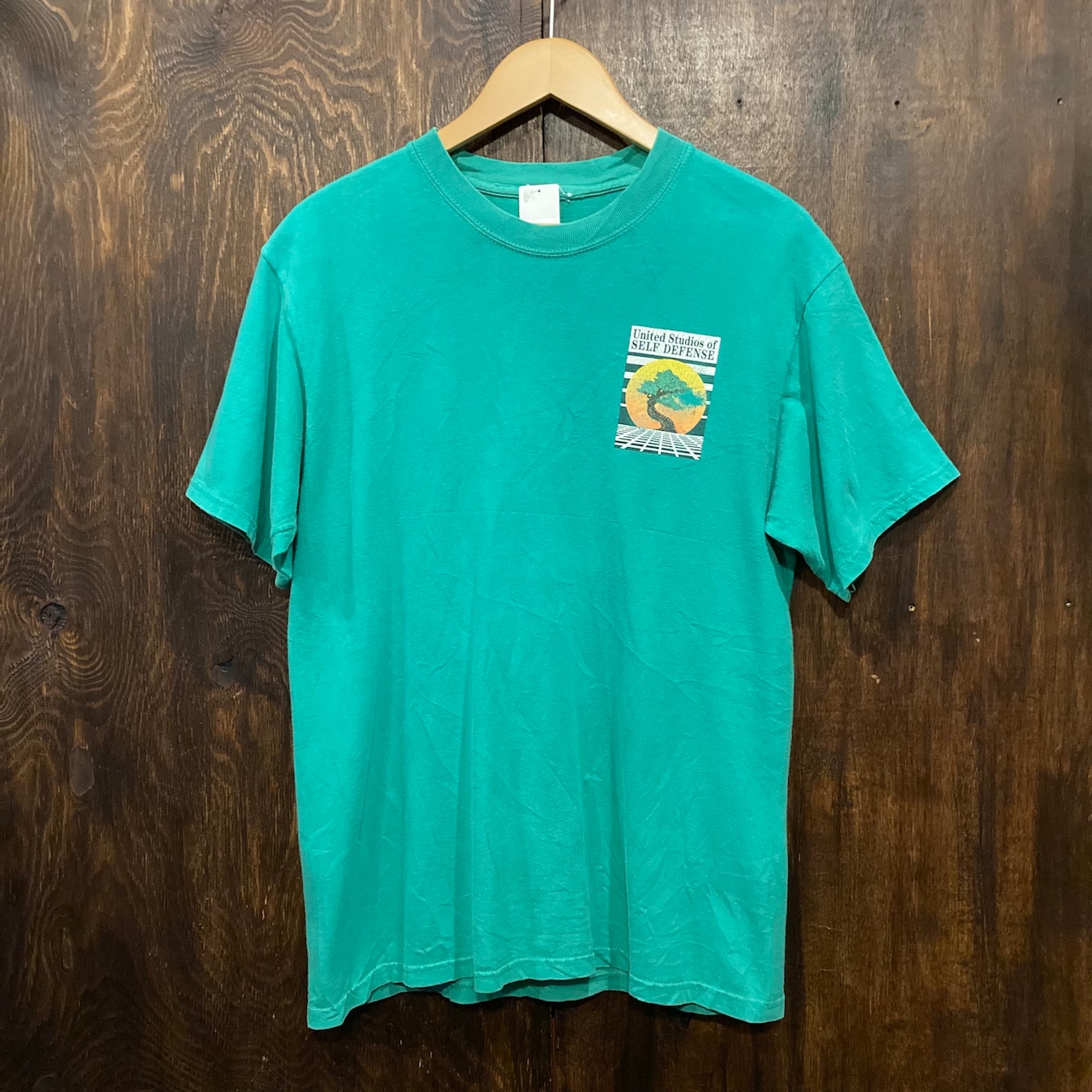 アメリカ古着 半袖Tシャツ 漢字プリント 緑 US古着 プリントT 少林拳法です。