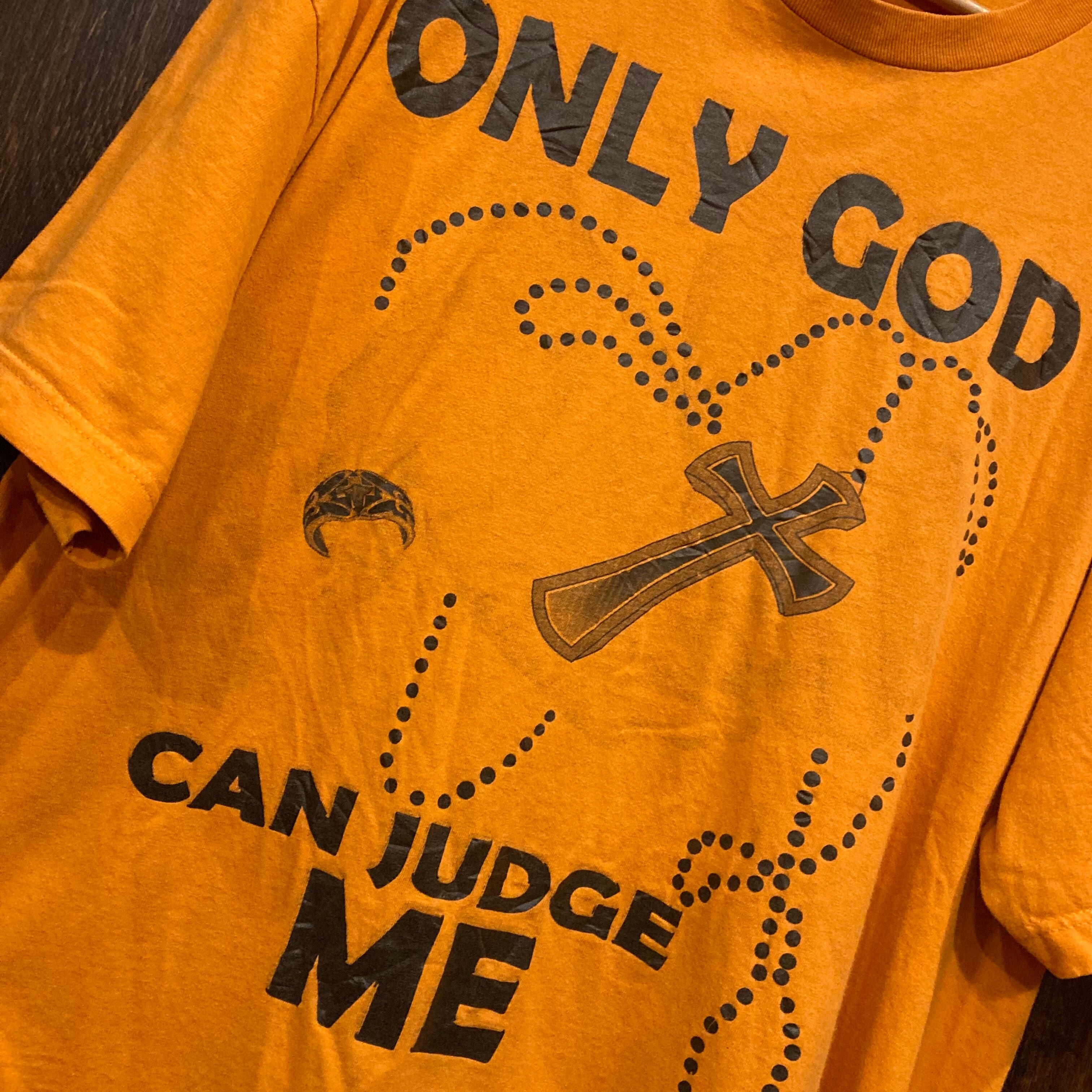 鮮やかなオレンジボディにメッセージやロザリオがプリントされた良い雰囲気の一枚。