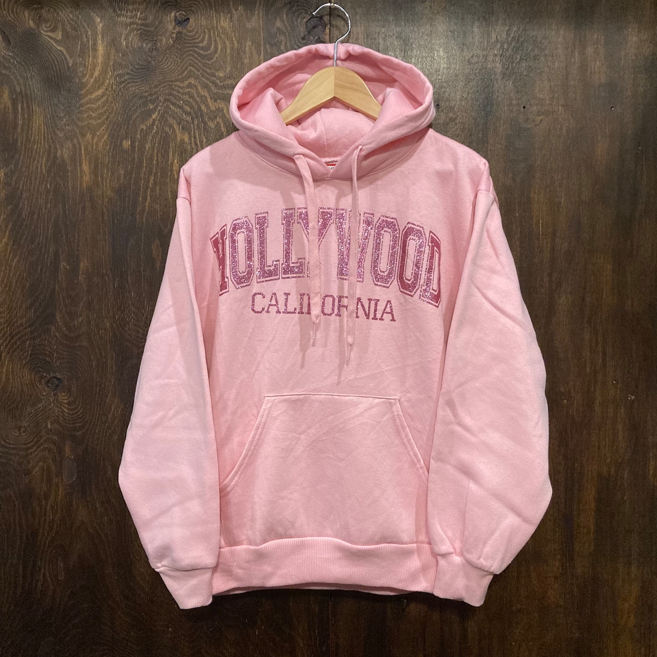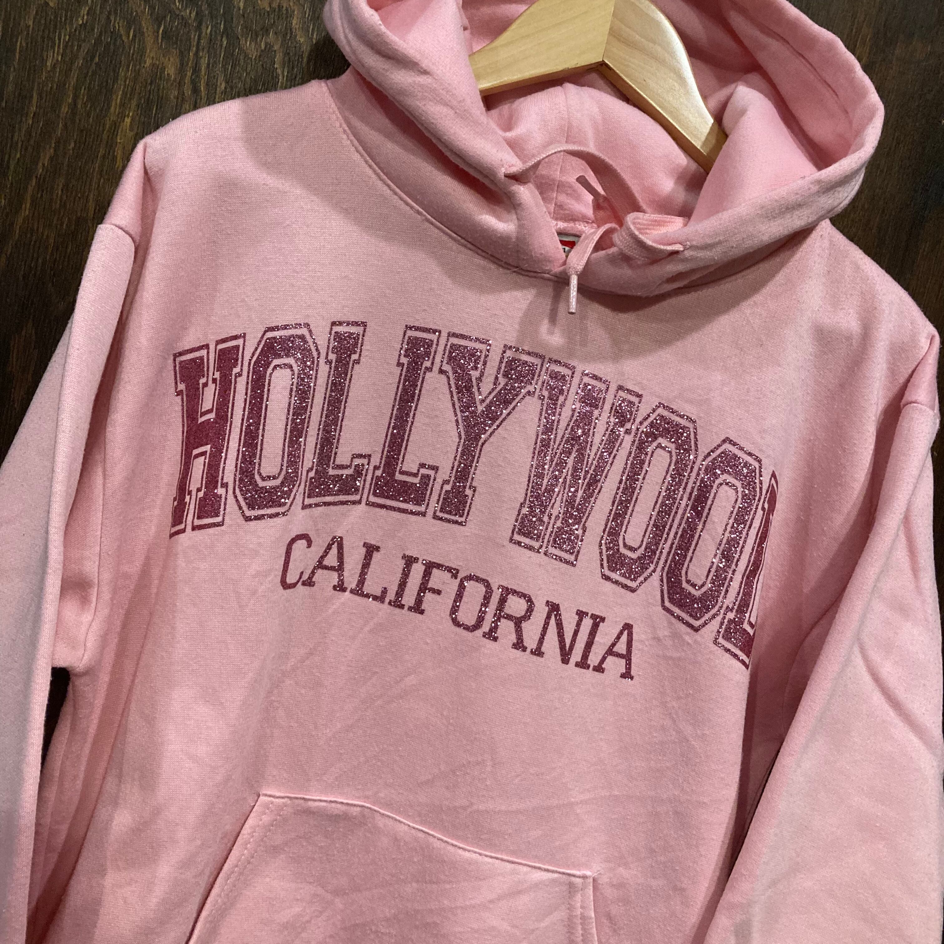 アメリカ古着 スウェットパーカー パーカー HOLLYWOOD USA製 ピンク アメリカ製 ラメプリント