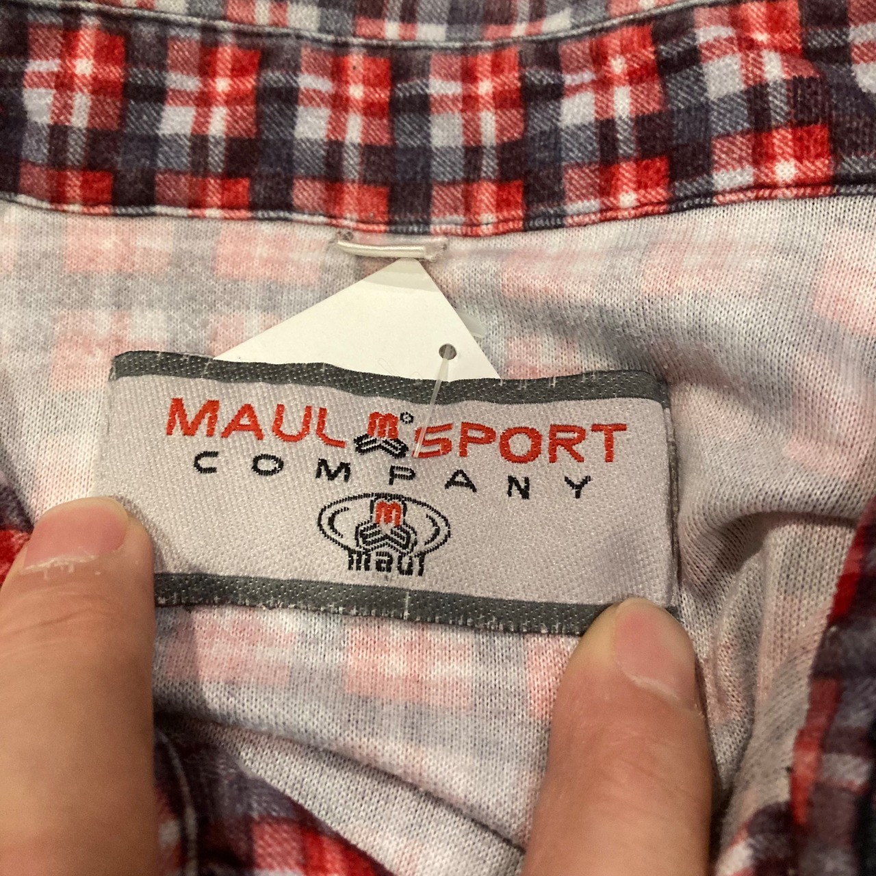 ユーロ古着 MAUL SPORTS 長袖 チェックシャツ ポリシャツ 赤です。