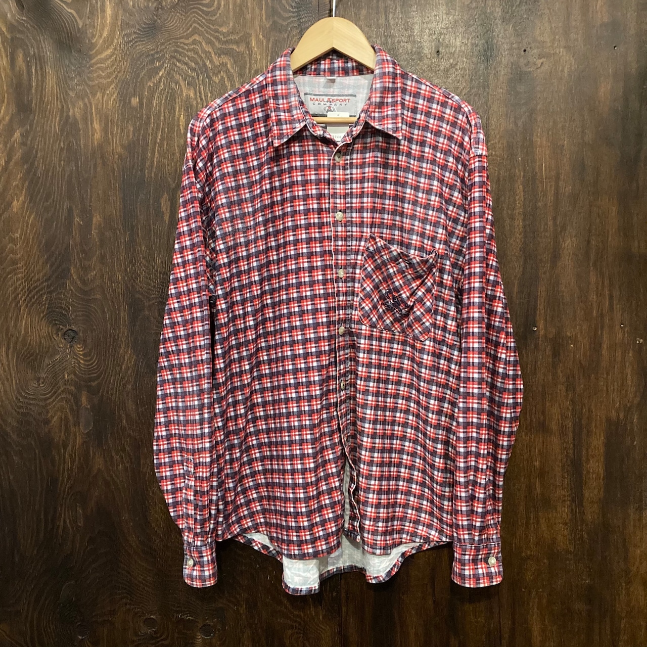 ユーロ古着 MAUL SPORTS 長袖 チェックシャツ ポリシャツ 赤 euro古着 ヨーロッパ古着