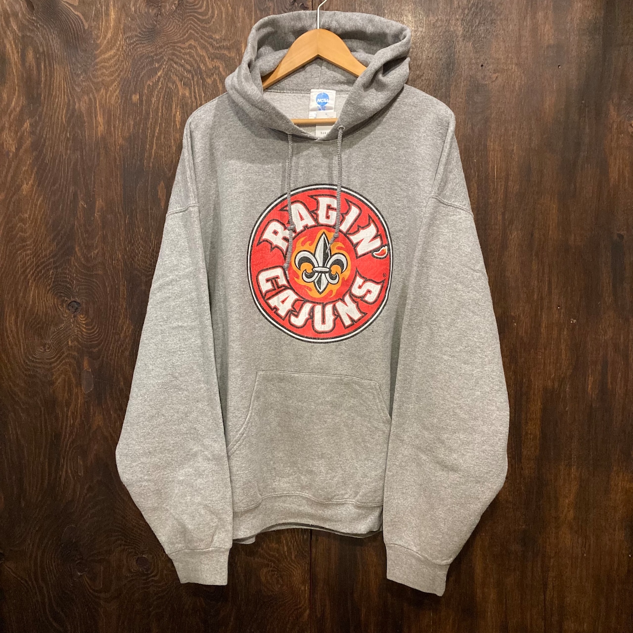 アメリカ古着 RAGIN’ CAUJUNS カレッジスウェット パーカー グレー HOODIE カレッジプリント NCAA