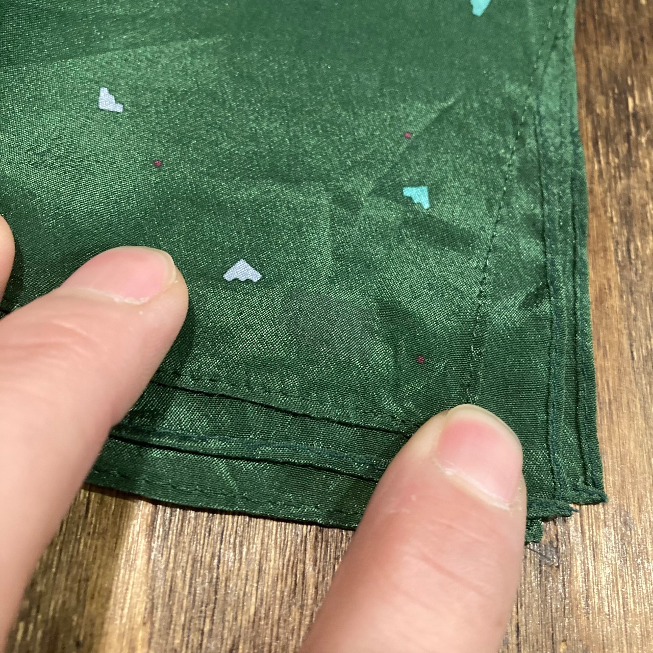 1970〜80年代 ビンテージ シルクチーフ ポケットチーフ 緑 ハート柄 シルク素材