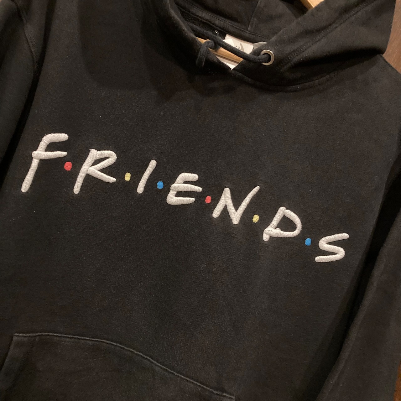 人気海外ドラマ、FRIENDSの刺繍がフロント中央に施されたスウェットパーカー。