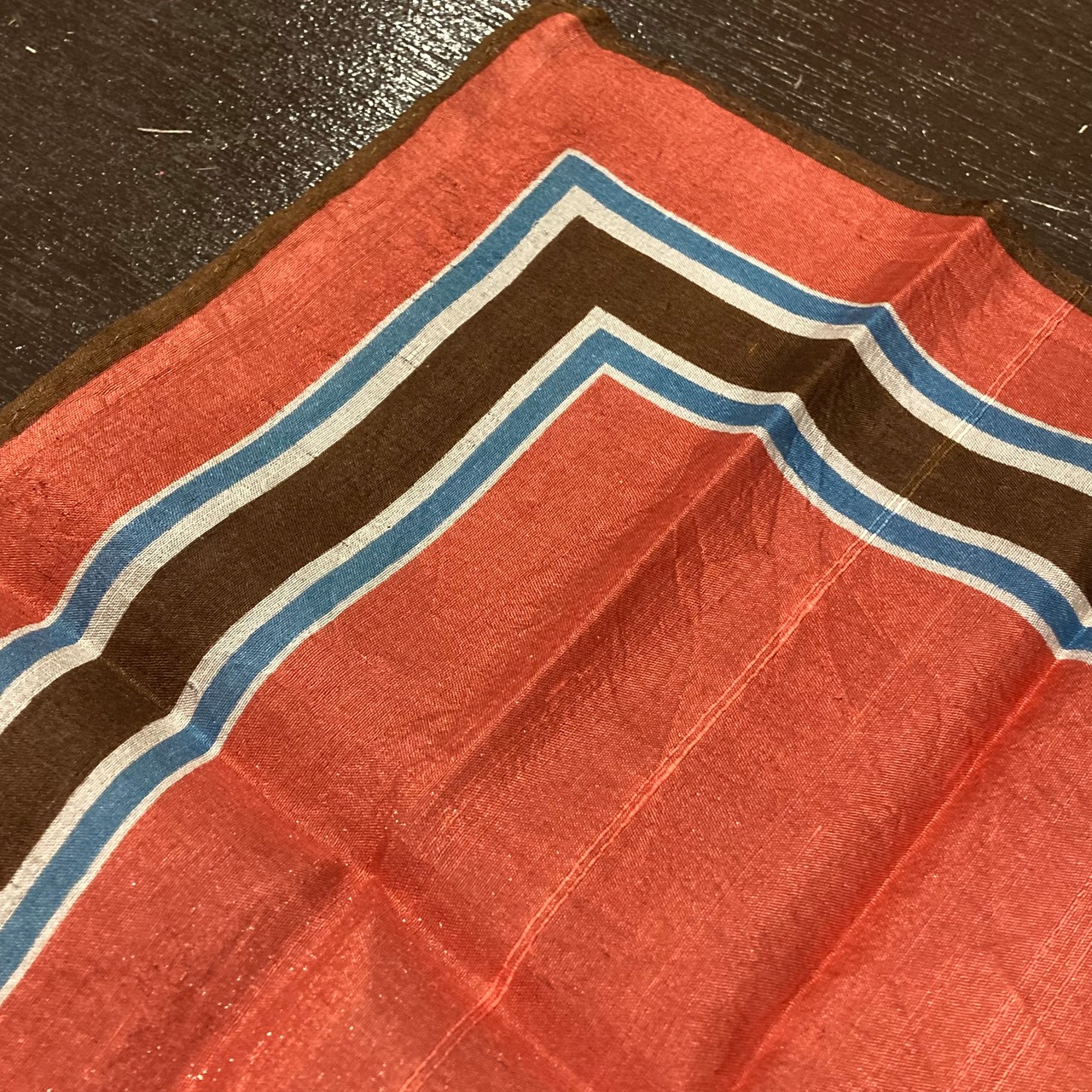 1970〜80年代 ビンテージ シルクチーフ ポケットチーフ 赤×茶 大判