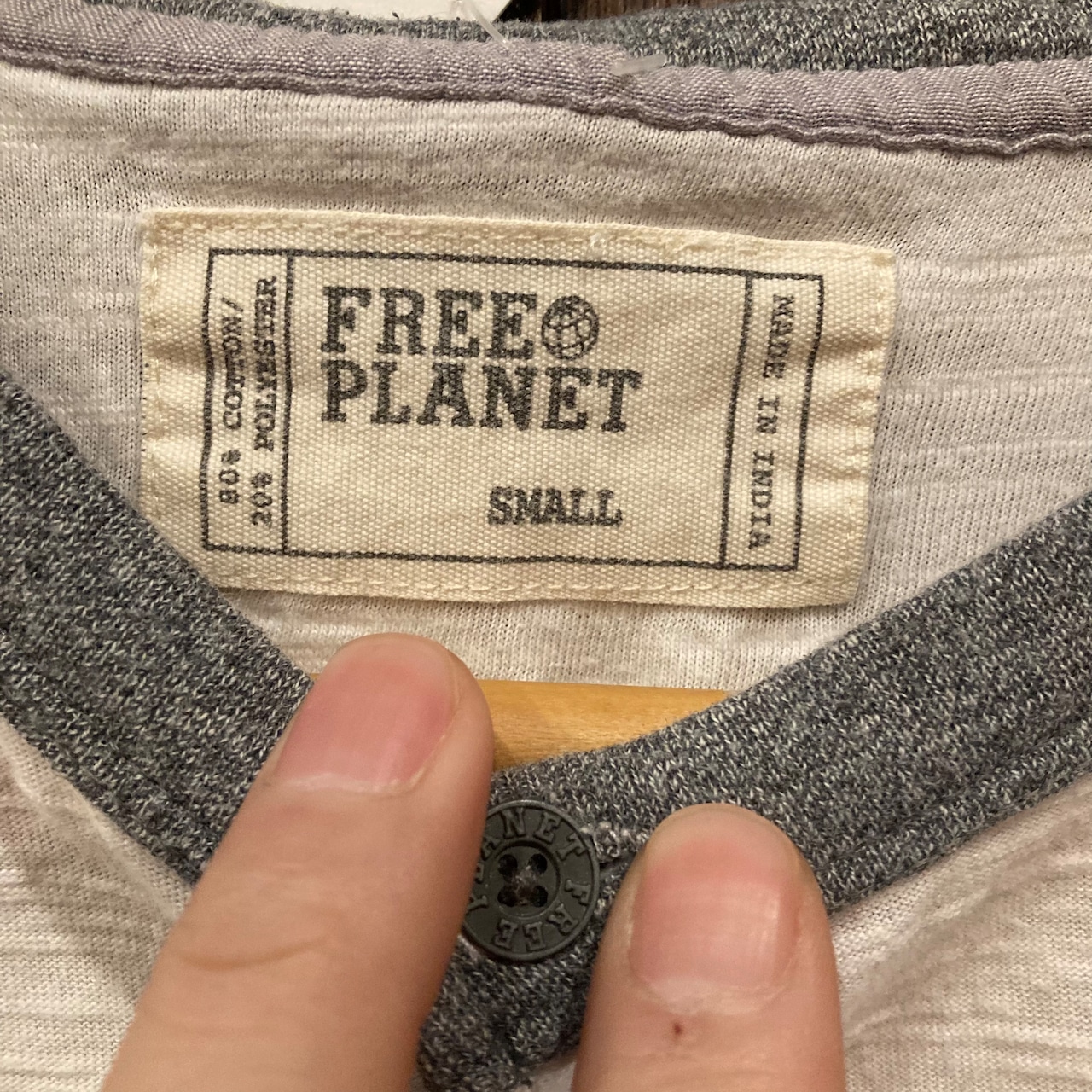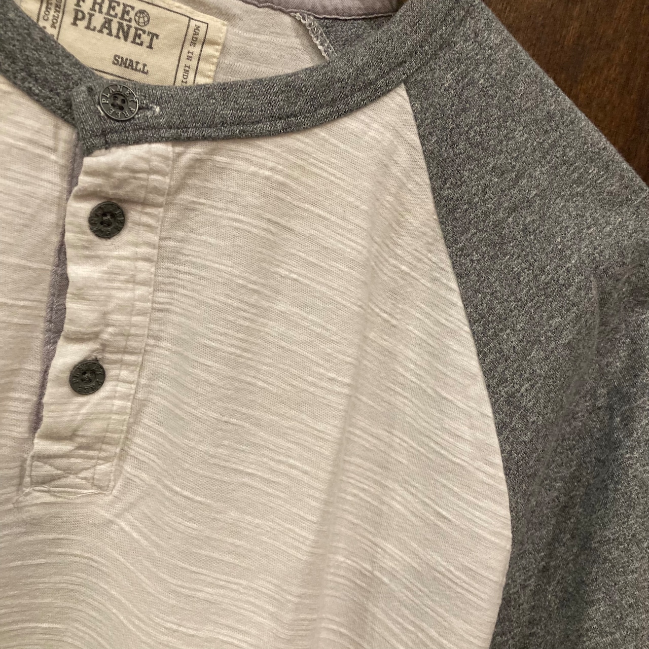 アメカジブランド、FREE PLANETの半袖ラグランヘンリーネックTシャツです。