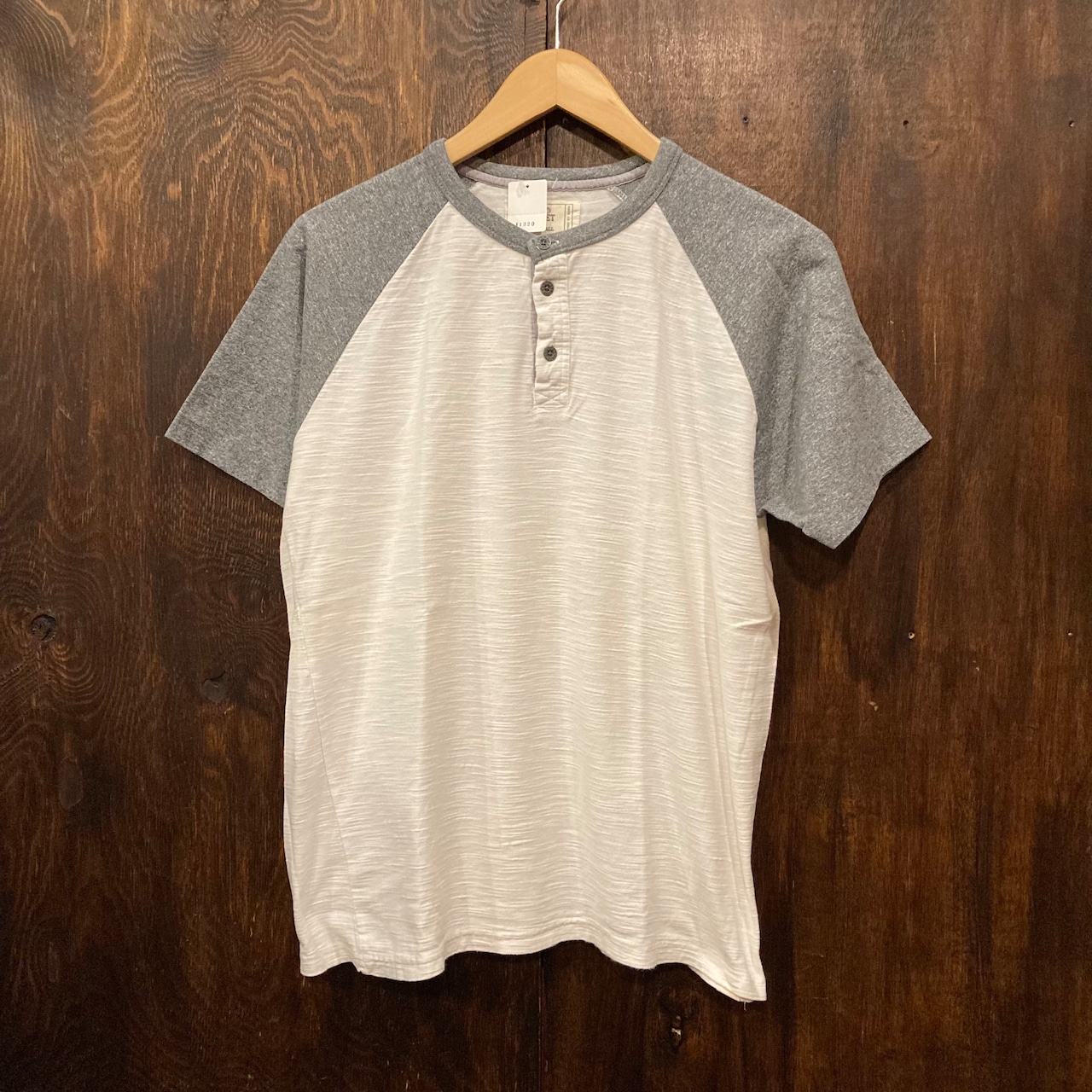 アメリカ古着 ヘンリーネックT ラグランT Tシャツ 半袖Tシャツ 白×グレー