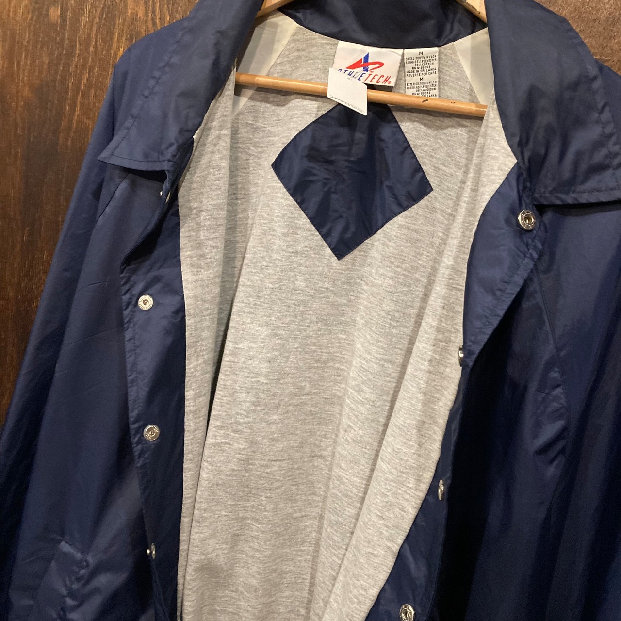アメリカ古着 ATHLE TECH ナイロンジャケット コーチジャケット 紺 Mです。