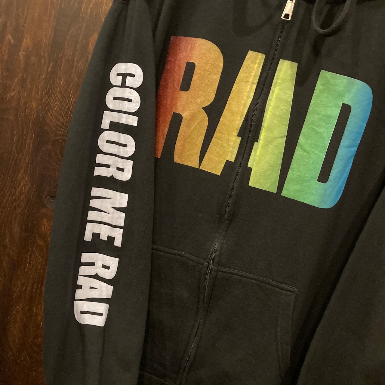 アメリカ古着 COLOR ME RAD ジップスウェットパーカー パーカー 黒です。