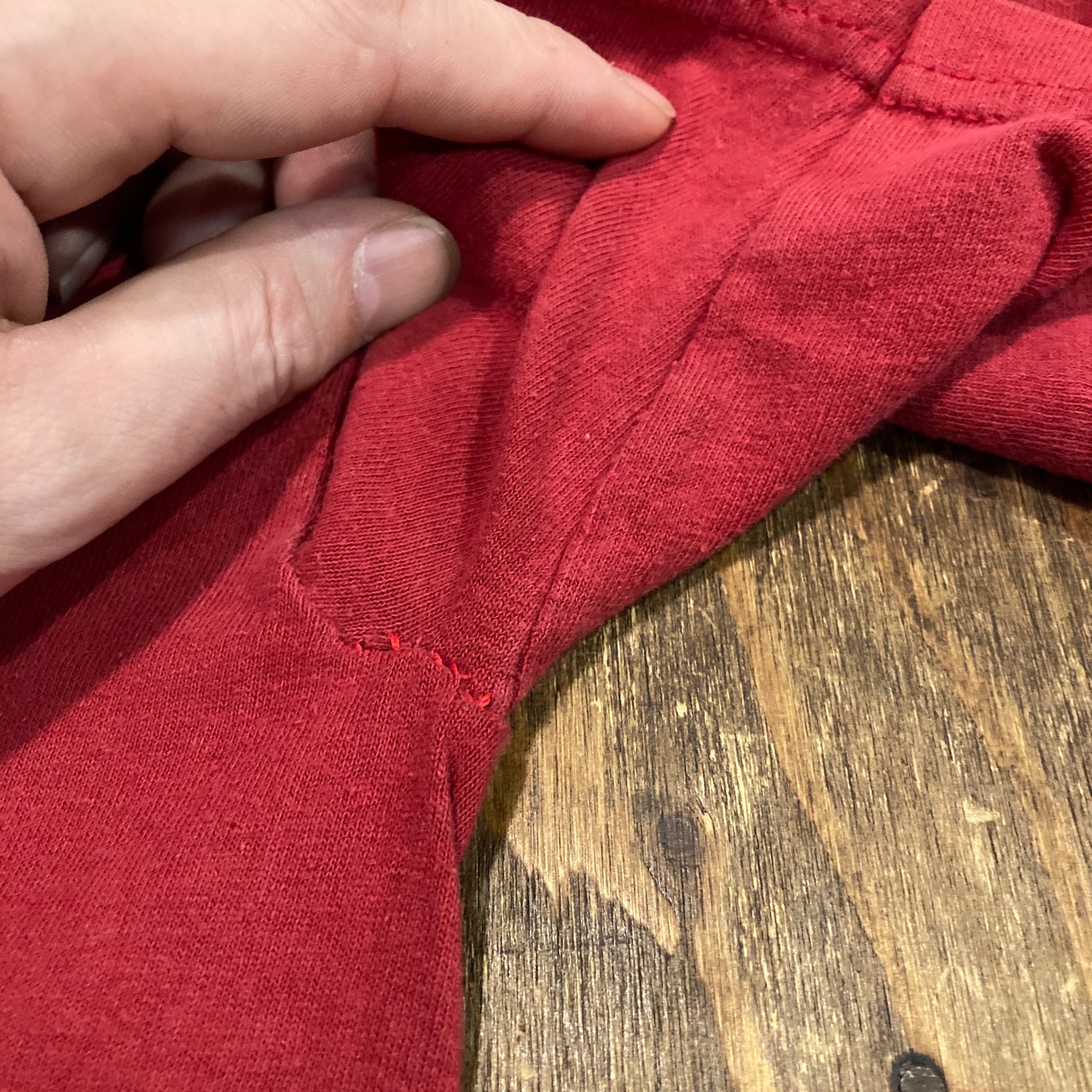ワインレッドボディに多色使いのシンプルなプリントが良い雰囲気。