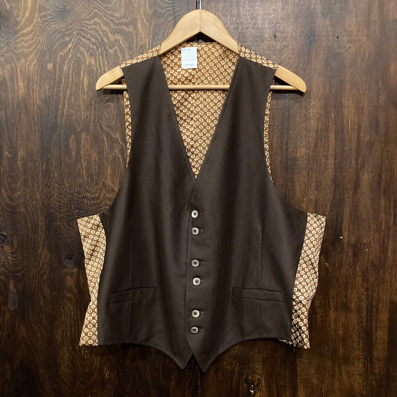 アメリカ古着 スーツベスト オッドベスト ジレ 茶 背面 総柄 ジレベスト