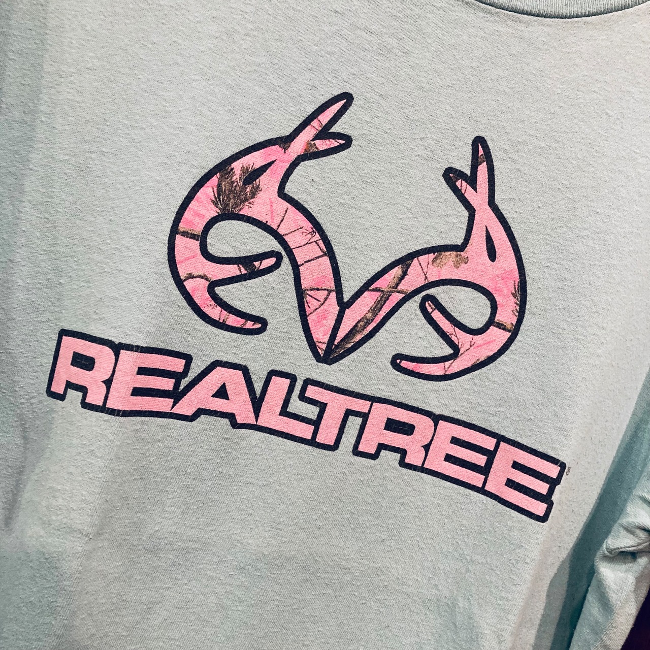 アメリカ古着 REALTREE 半袖Tシャツ プリントT ミントブルー ロゴT