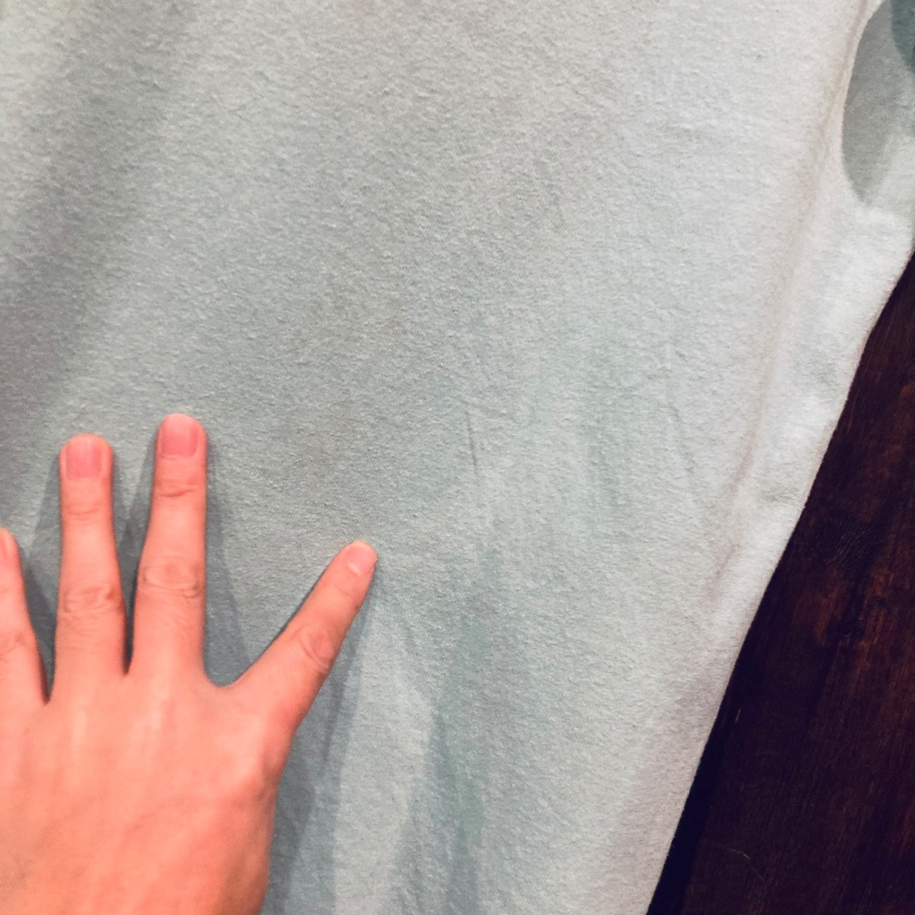 淡いミントブルーボディに当ブランドのロゴプリントが良い雰囲気。