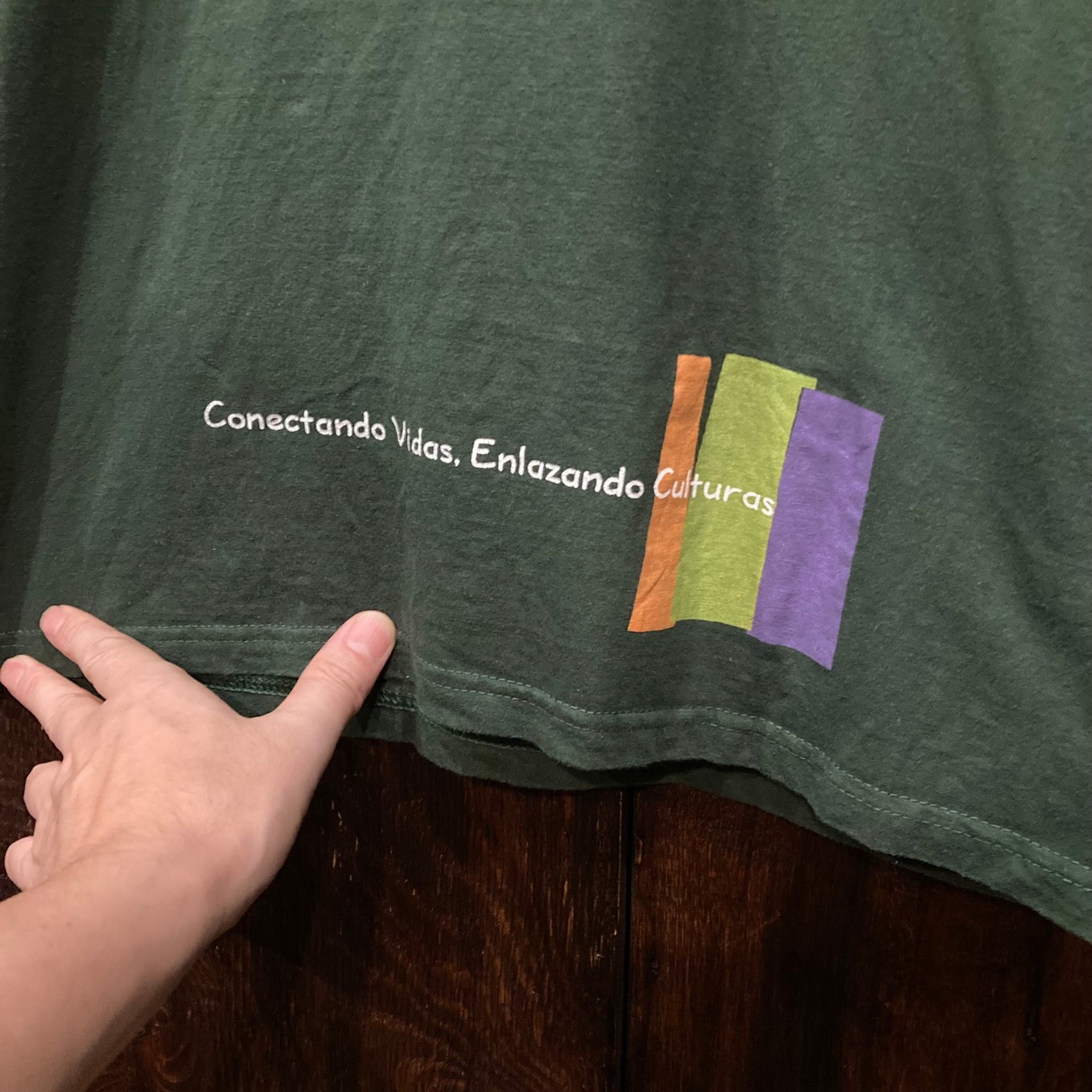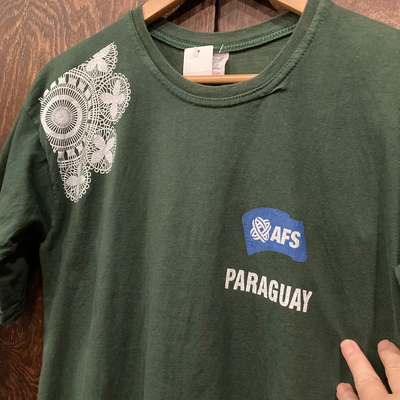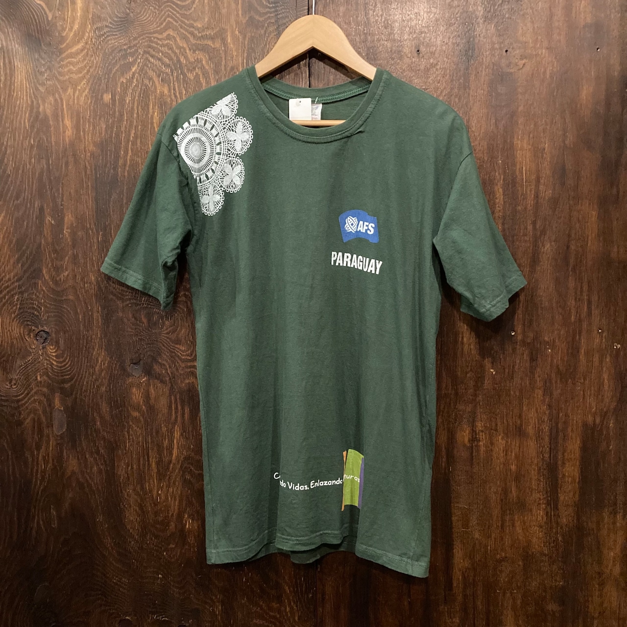 アメリカ古着 半袖Tシャツ プリントT マルチプリント 緑 AFS Mサイズです。