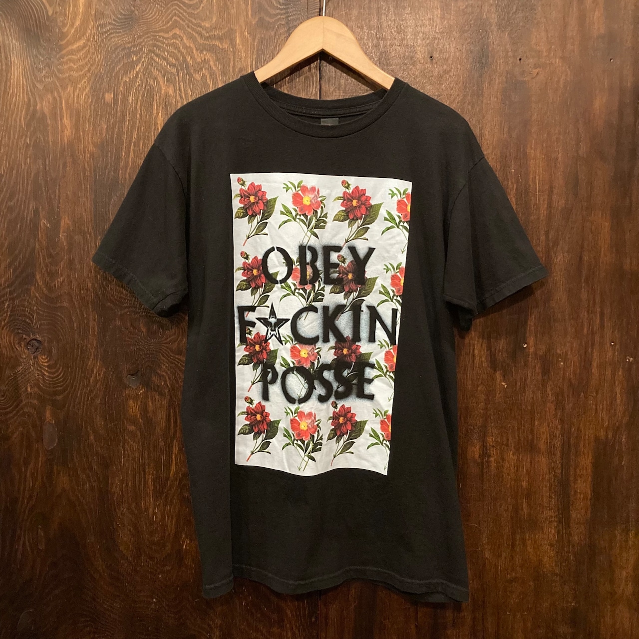 アメリカ古着 OBEY オベイ 半袖Tシャツ プリントT フラワーモチーフ Mサイズ 黒