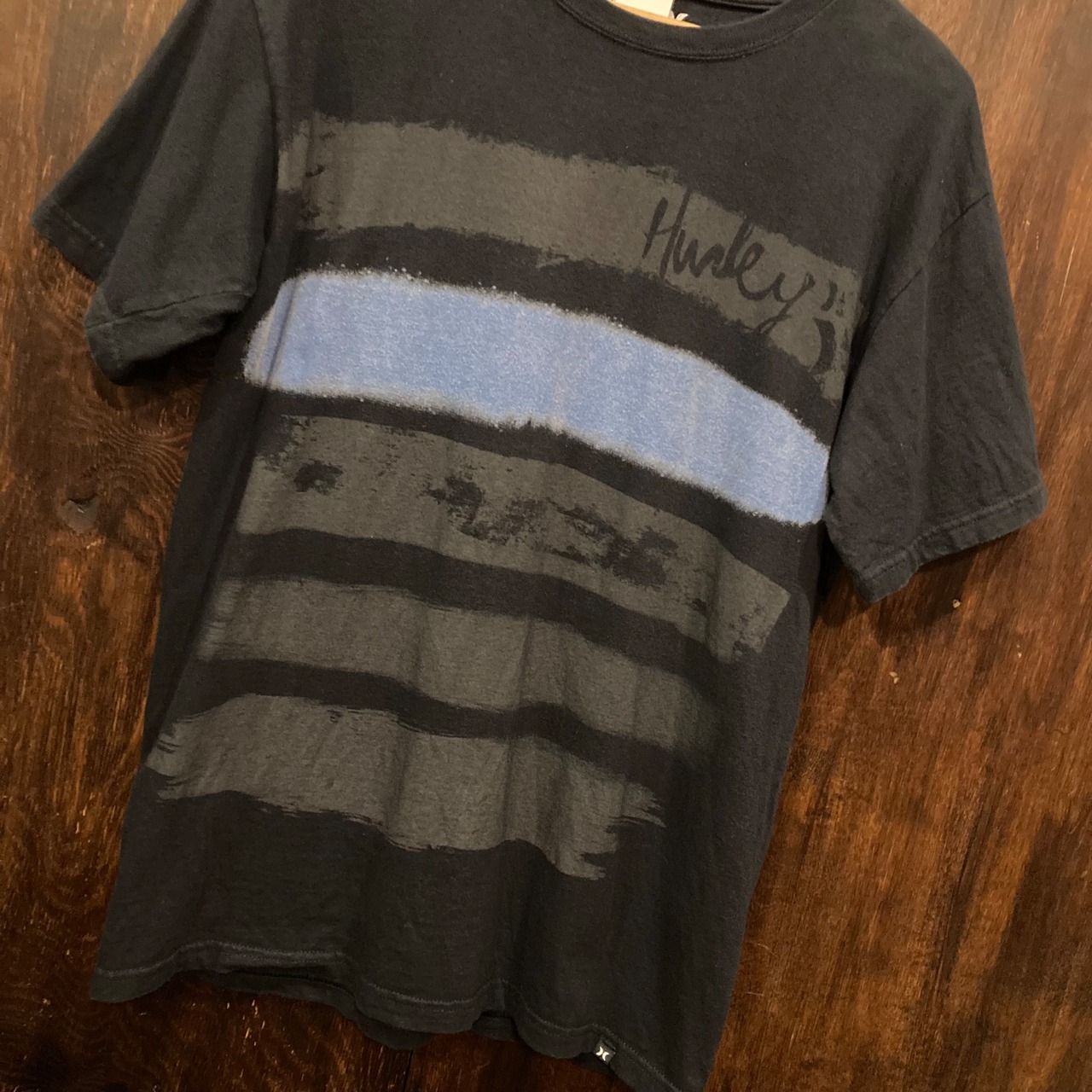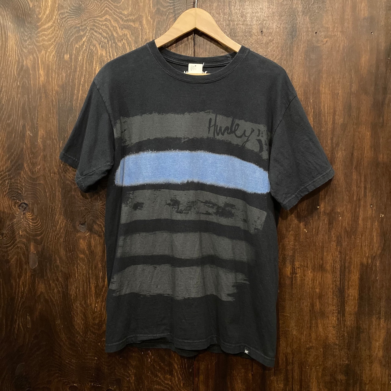 アメリカ古着 Hurley ハーレー 半袖Tシャツ プリントT ボーダーモチーフ Mサイズ 黒