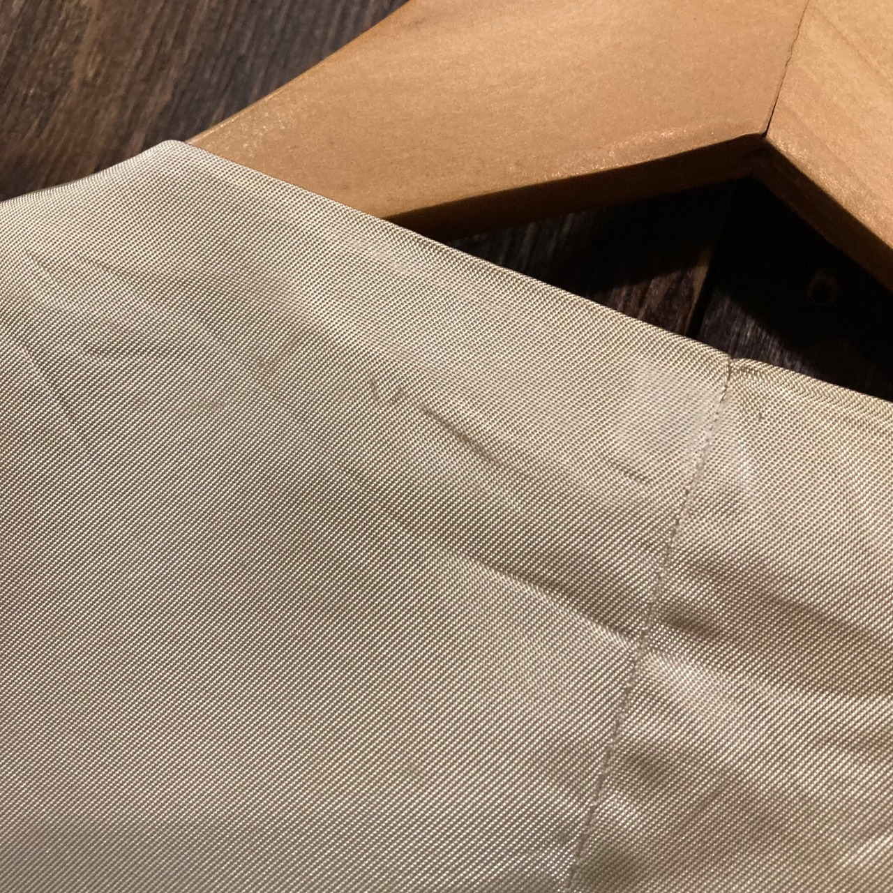 フロントは薄めのグレーのストライプ柄バックはベージュのサテン生地で渋めな一枚。