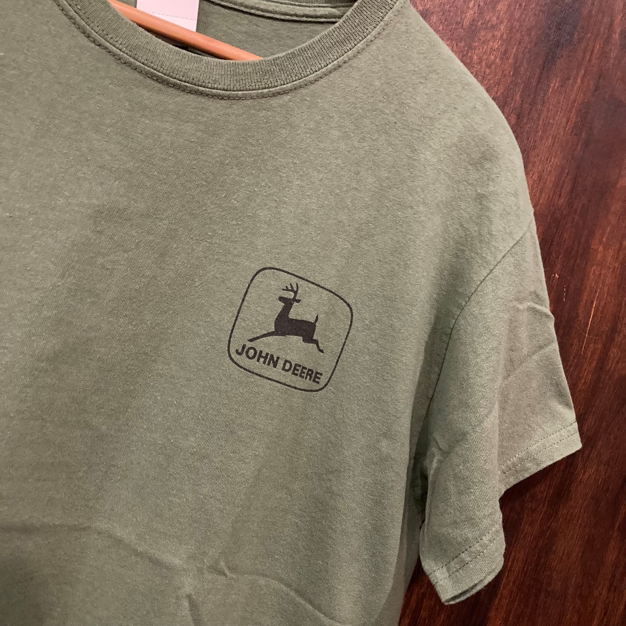 鹿のエンブレムが有名なアメリカの老舗農業機械メーカー、ジョンディアの半袖プリントTシャツ。
