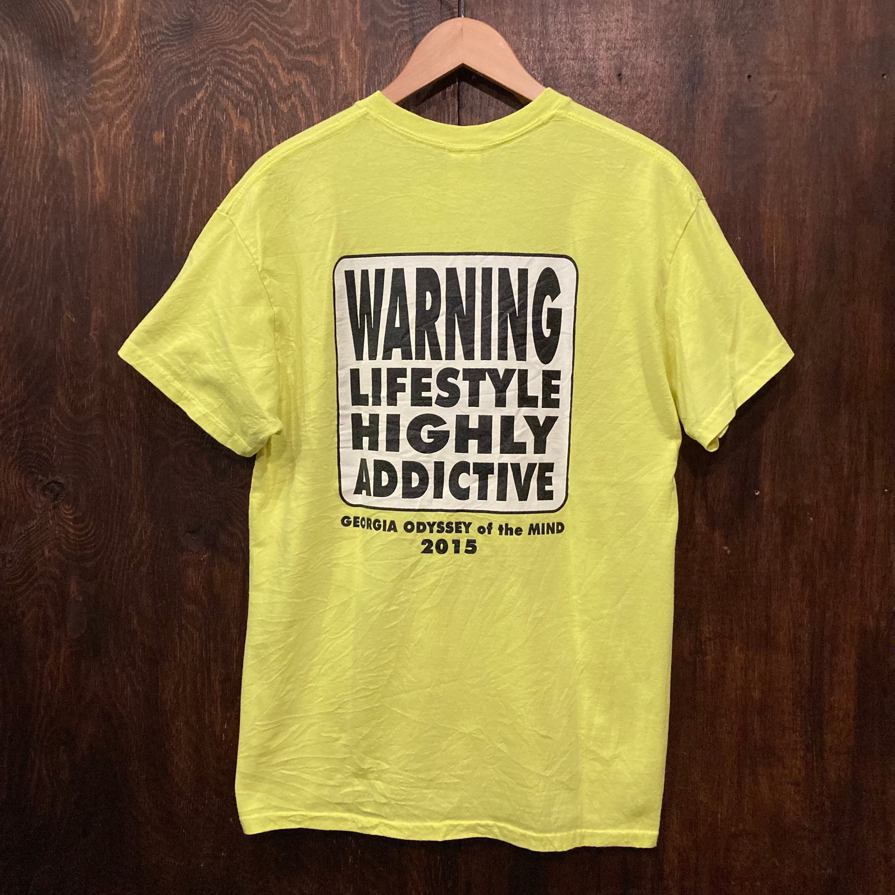 アメリカ古着 USA古着 半袖Tシャツ マルチプリント 蛍光イエロー Mサイズ プリントTシャツ