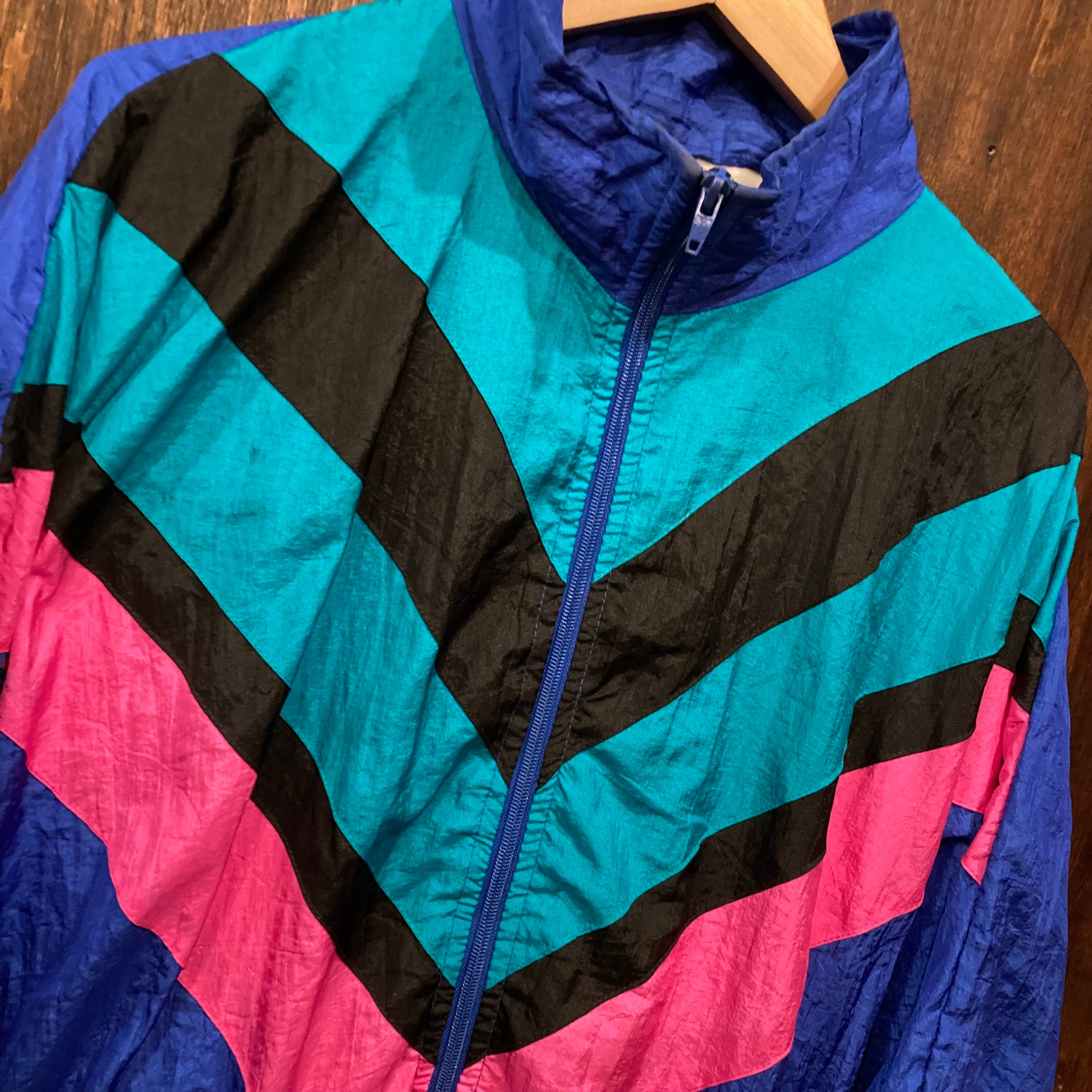 IN MOTION ACTIVE WEARの80年代マルチカラーナイロンジャケット。
