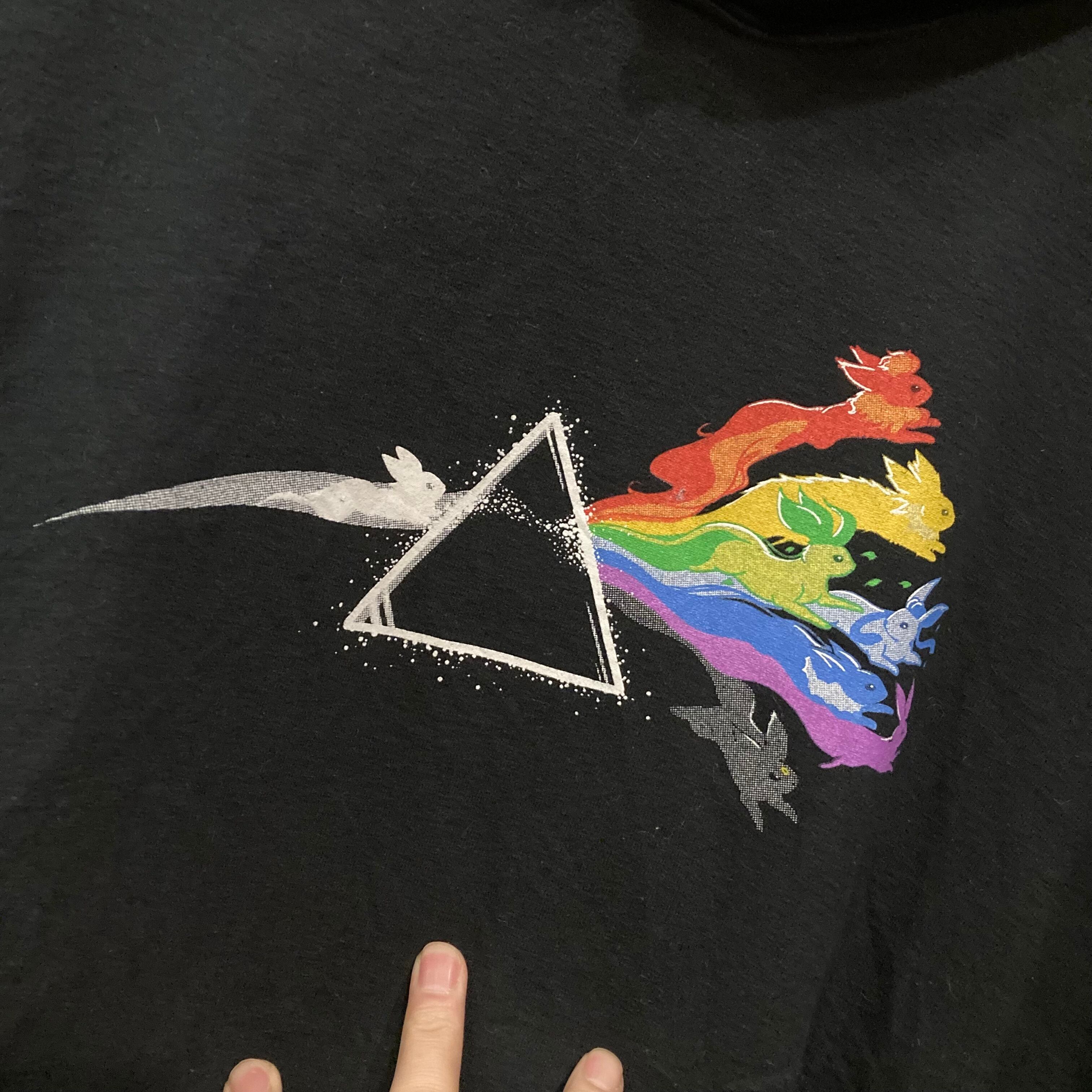 黒ボディにプログレバンド、ピンクフロイドのアルバムThe Dark Side of the Moonのジャケットをモチーフとしたプリントが施されたスウェットパーカー。