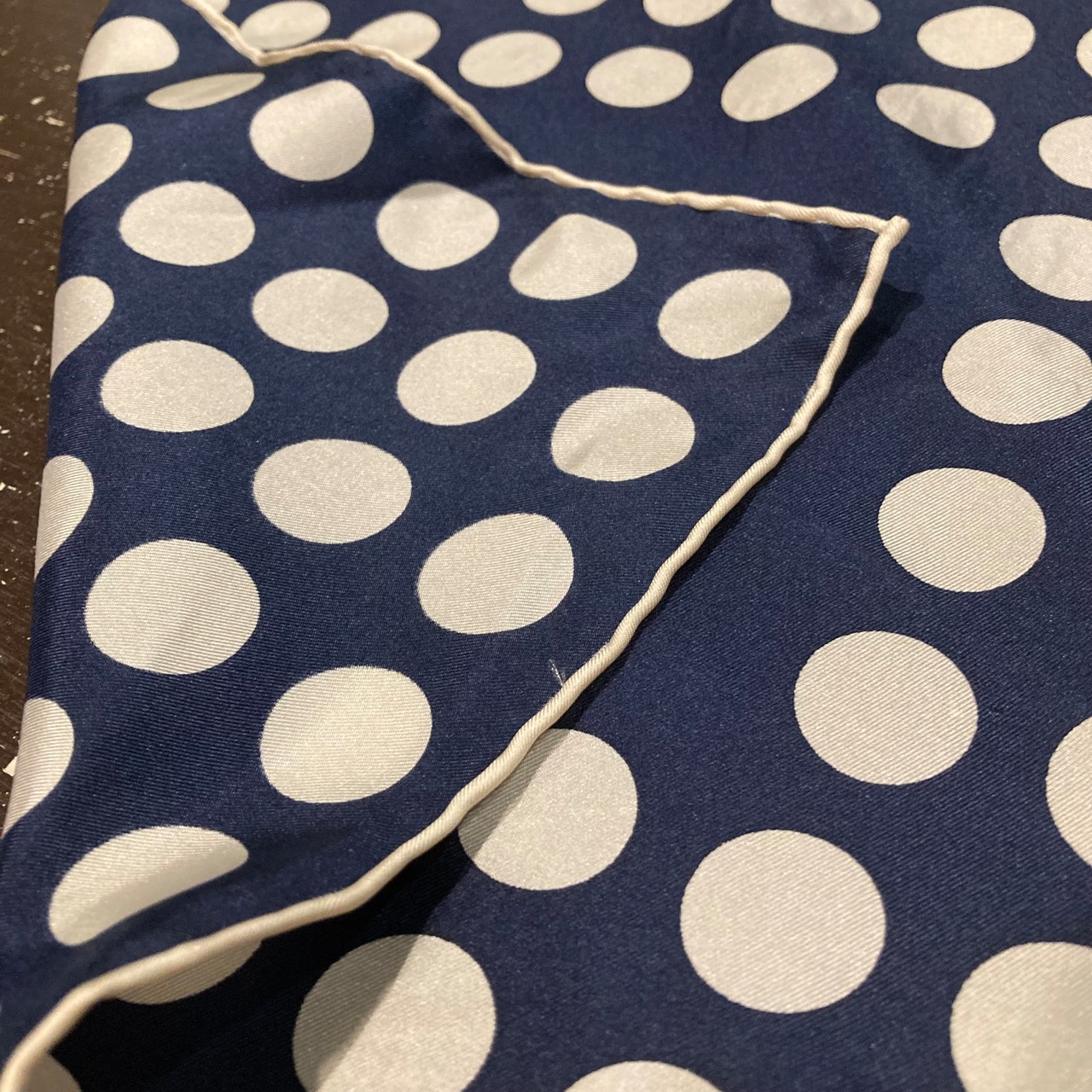1970〜80年代 ビンテージ シルクチーフ ポケットチーフ ドット柄 紺×白