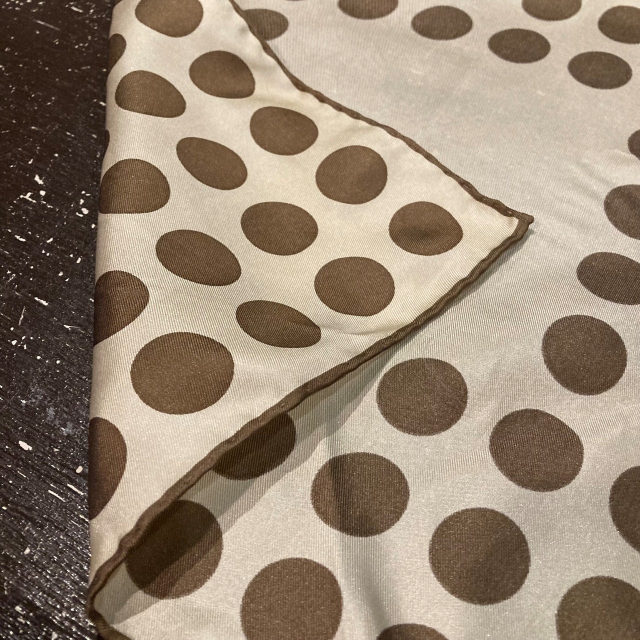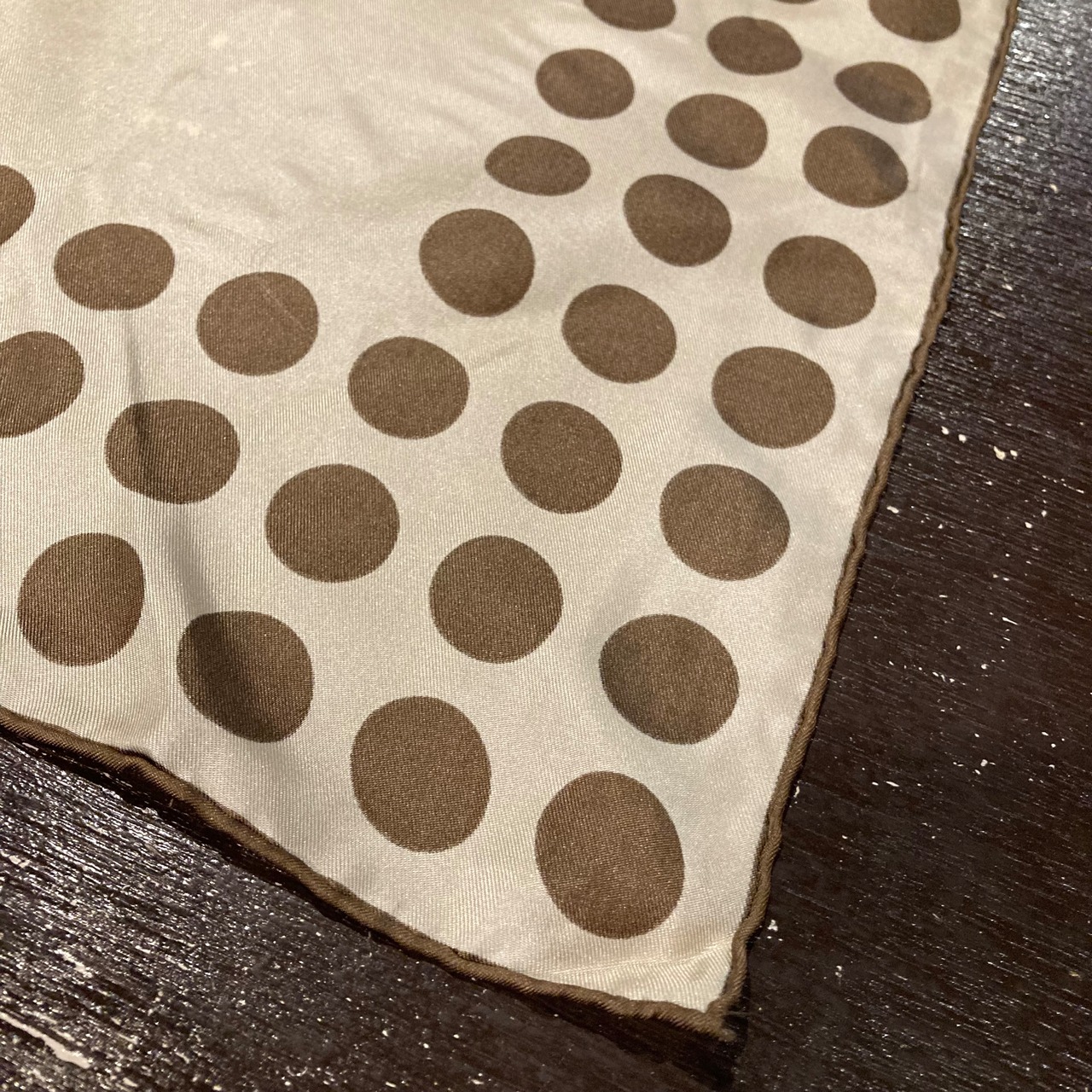 1970〜80年代 ビンテージ シルクチーフ ポケットチーフ ドット柄 ベージュ×ブラウン