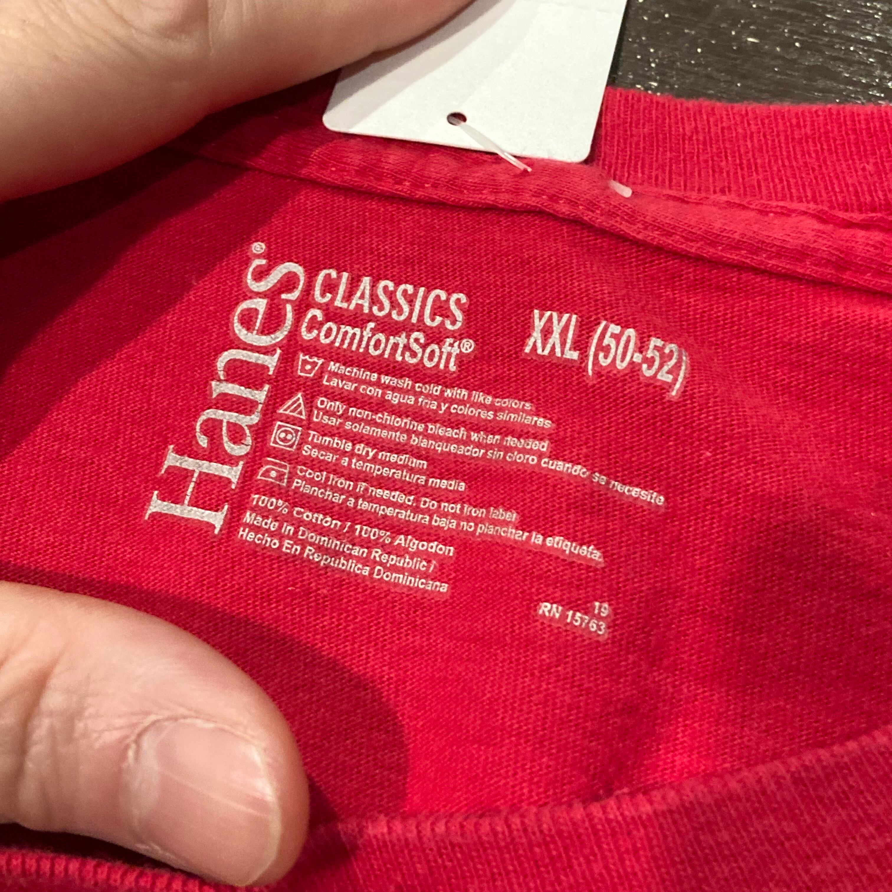 USA古着 Hane's ビッグシルエット 半袖T ポケットT 無地 赤 2XL ビッグサイズ ルーズシルエット Tシャツ