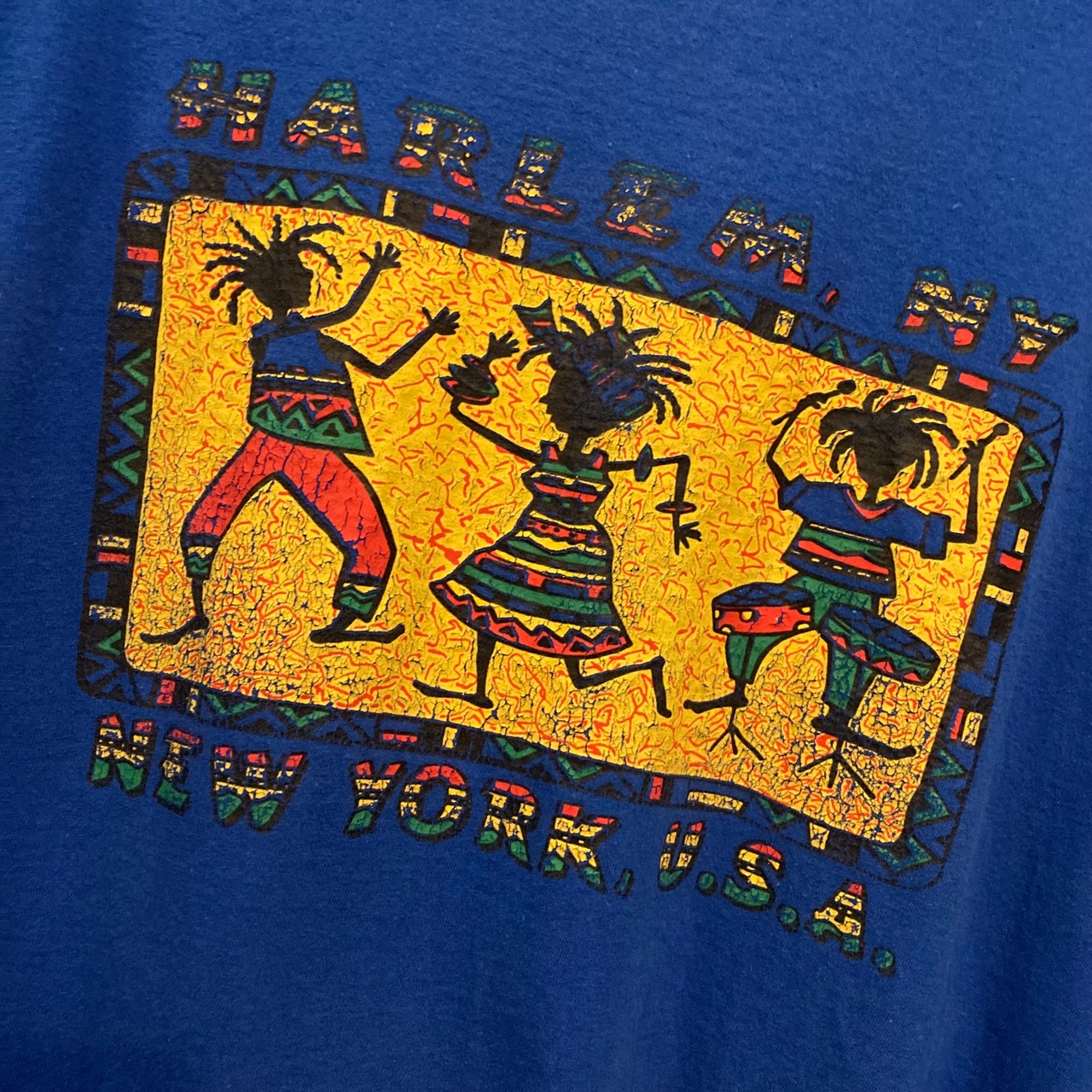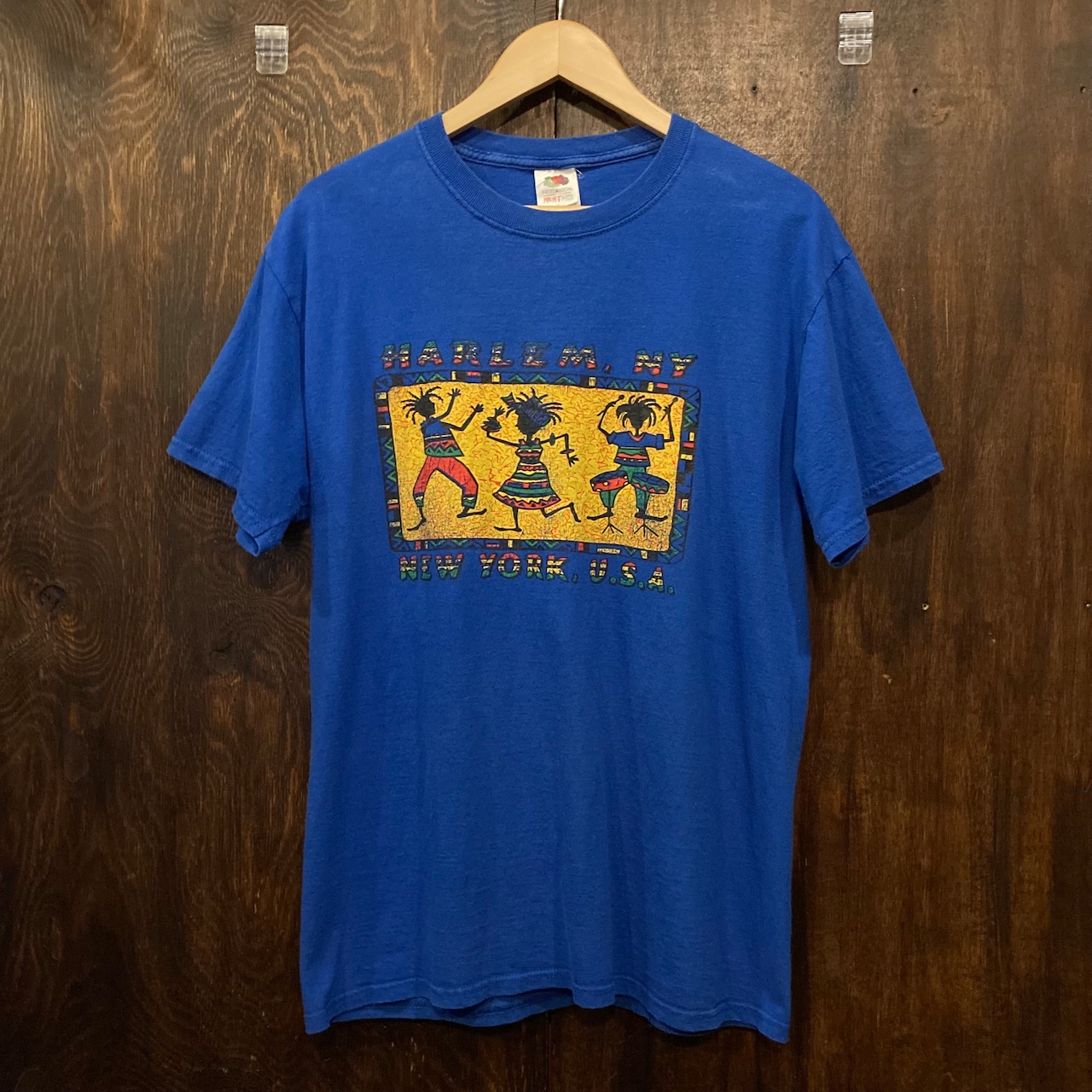 USA古着 半袖Tシャツ HARLEM ハーレム スーベニア 青 Mサイズ アメリカ古着 スーベニアT