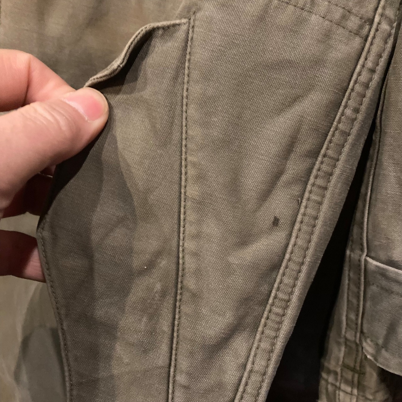左ポケット部と左背面に薄汚れ有り。